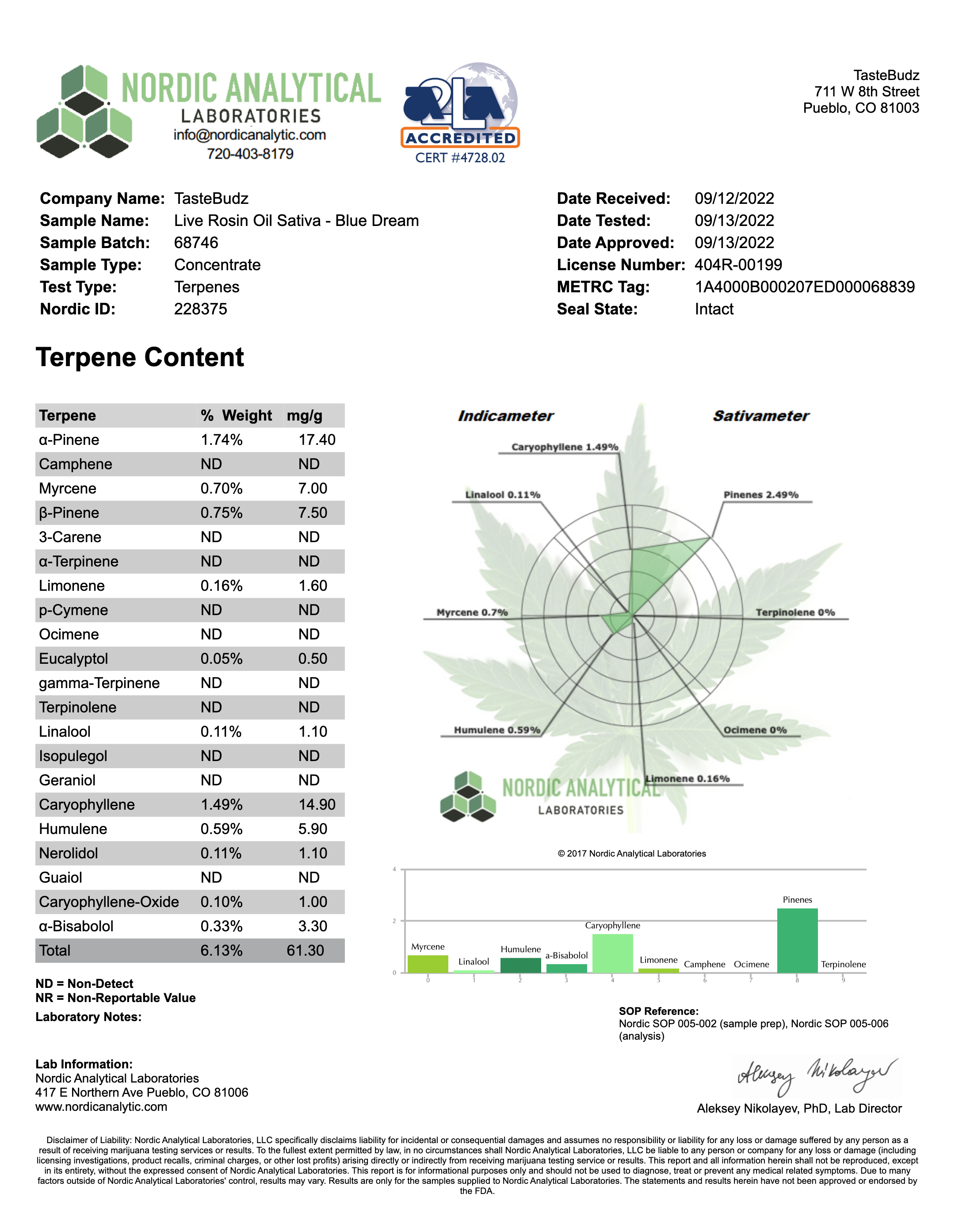 Blue Dream Batch #68746 Cannabinoid Testing Terpene Testing Blue Dream Batch #65674 Cannabinoid Testing Terpene Testing